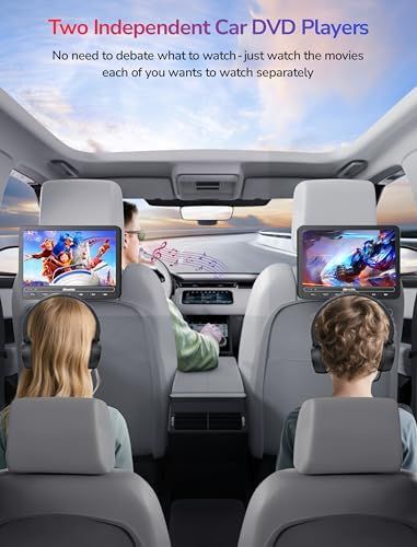 TWO WAYS TO PLAY The portable car dvd player supports 2 different movies independently, and plays the same movie via included AV cable by connecting
