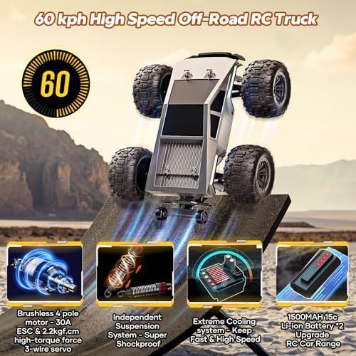 Upgraded 45mph Brushless RC Cars Range : Upgrade the battery to 7.4V/1500Mah *2 , comes with visualization of power status; Fast speed change and acceleration, this adultsrc truck remote control truck for adults can easily realize the speed and passion you want.