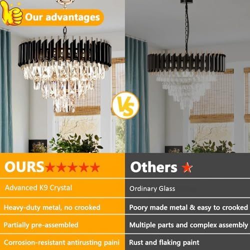 【Adjustable height dining chandeliers suitable for various usage scenarios】Size: D12 \"× H11.2\" | Weight: 10 pounds. Including 3 13 inch extendable metal chains (max height 39 inches), it can be used for embedded or suspended installation, making it an ideal crystal chandeliers for dining room, kitchen island, living room, or bedroom. Installation can be completed according to the installation instructions.