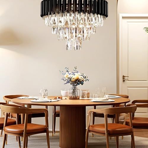【Black and Gold Chandelier - Minimalist Luxury Design】This 20 inch circular crystal small chandelier light features a 4-Tier layout and comes with 9 E12 bases (each bulb has a maximum power of 40W, not including bulbs). The imitation copper metal frame paired with K9 crystal prisms is suitable for modern/light luxury/European styles, achieving a perfect balance between minimalist geometry and luxurious aesthetics.