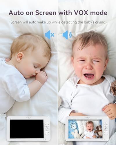 【7\" Large Color Display & Remote 355° Pan and Tilt 】: Enjoy a 7\" Big Screen on this baby camera monitor. Remote control camera rotate 355° in horizontal and 120°vertical gives you a larger view of your baby\'s room. 4X zoom function ensures clear visuals. Noiseless camera rotation for a peaceful environment.