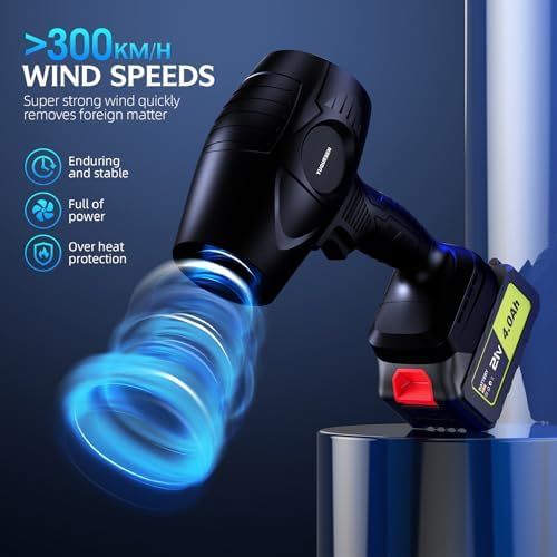 Leaf blower cordless with battery and charger comes with 2 21V-4000mAh batteries and a quick charger, leaf blowers 26 minutes of continuous operation (13 minutes per battery). The electric leaf blower cordless more efficient care of your yard, the charger is designed as a rapid charger that quickly recharges the batteries. Battery blower brings more convenience to your cleaning and gives you a clean and tidy garden.