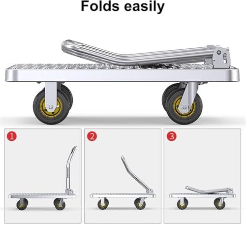 Spacious Loading Platform - Flatbed carts are very convenient for moving objects that are too large or heavy to be carried by one person. It comes with a large flatbed truck that you can use to stack quite a few packages on this platform truck at one time instead of going back and forth several times, thus saving a lot of time and effort.