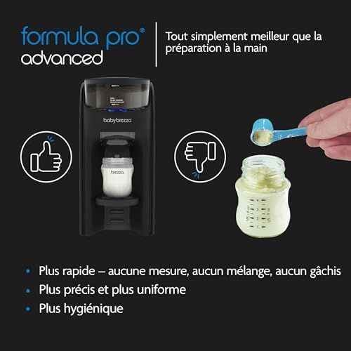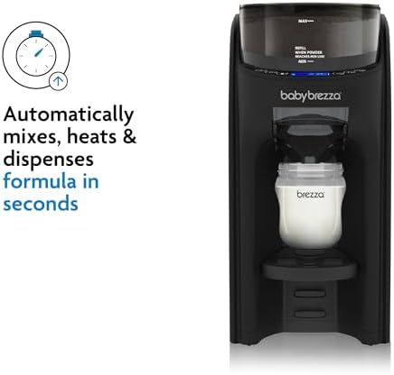 MOST ADVANCED WAY TO AUTOMATICALLY MAKE A WARM, FORMULA BOTTLE IN SECONDS: Precise mixing technology automatically mixes formula and water to the perfect consistency every time without air bubbles - No measuring, no mixing, no fuss\nFULLY CUSTOMIZABLE: Dispense between 2-10 ounces in 1 oz increments, choose from 3 temperature settings (Body Temp., Warmer Than Body Temp., Room Temp.) or dispense water only\nMORE ACCURATE, CONSISTENT, HYGIENIC & FASTER THAN HAND SCOOPING: Formula dispensed from airtight powder container; Clinical study showed 1/3 of all bottles made by hand were inaccurate by 10% or more\nUNIVERSAL COMPATIBILITY: Works with virtually all formula brands and all bottle sizes; 1 year limited warranty (not valid if shipped outside Canada or if another brand of replacement part not made by Baby Brezza is used)\nALSO AVAILABLE IN WIFI/BLUETOOTH-ENABLED VERSION: To make a bottle from your phone and pre-set up 4 different bottles using the FREE app, search for Baby Brezza Formula Pro Advanced WiFi on Amazon\n› See more product details