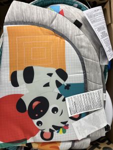 4 modes include lay and play, sitting up, tummy time, on the go; Helps baby strengthen neck muscles during tummy time; Piano includes 25+ minutes of continuous lights and music plus teaches colors, shapes, and numbers in 4 languages: English, Spanish, French, and German