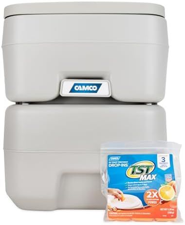 Essential Outdoor Sanitation Package: This porta potty includes (1) portable toilet for camping and (3) TST Orange Drop-IN RV toilet treatments, thoughtfully designed to elevate your outdoor adventures with ease and hygiene.