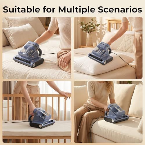 Powerful Suction: The handheld mattress vacuum cleaner features an incredible 16Kpa suction and high-frequency tapping at 72000Rpm/Min, allowing it to easily and quickly penetrate deep into the mattress to thoroughly remove fine dust, creating a cleaner sleep environment.