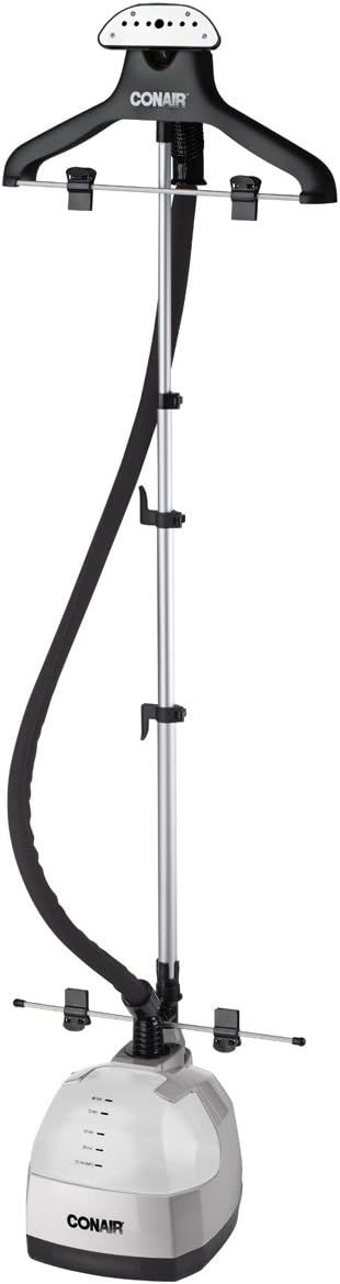 Full Size Fabric Steamer: This steamer featires 1500 watts of power, 45 second heat up and up to 70 minutes of high velocity continuous steam; Steaming Control: Features a telescoping pole for height adjustment and T nozzle with 5 foot cool touch insulated hose Smoothes, Dewrinkles and Freshens: Features a removable, large capacity 80 ounce water tank that is easy to fill and an auto shut off when the water gets too low, plus cord wrap storage feature for easy storage Conair Fabric Steamers: Our garment steamers have earned the Good Housekeeping Seal and keep your clothing, upholstery, curtains and other home fabrics smooth and fresh. Check out entire line including handheld, upright and travel steamer Innovative Garment Care: From fabric shavers and traditional irons to garment steamers, both handheld and full size, we make high-quality garment care accessories. › See more product details