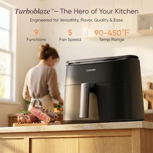 𝙋𝙧𝙤 𝙐𝙥𝙜𝙧𝙖𝙙𝙚: Cosori\'s unique 5-fan speed system and precise 90°–450°F temperature control deliver professional-grade versatility, creating exceptional dishes across all functions with just one basket