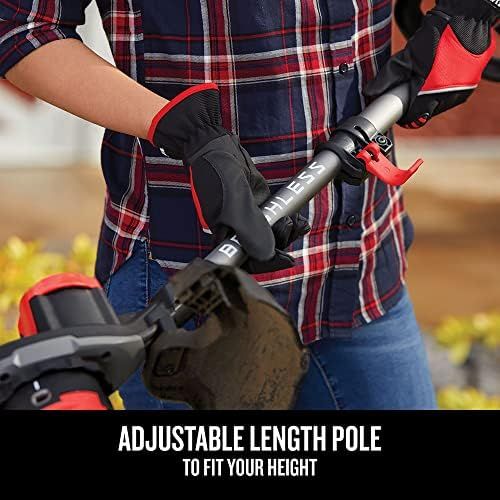 EXTENDED RUNTIME: Brushless motor with 2 speed settings lets you choose more power or more runtime ADJUSTABLE: Adjustable-length pole to fit your height QUICKWIND SPOOL SYSTEM: Provides easy 0.080 in. twisted line replacement BUMP FEED: 13 in. cutting swath allows for efficiency VERSATRACK COMPATIBLE: Use the integrated hook to hang this tool directly on the VERSATRACK Wall Organization System (sold separately)