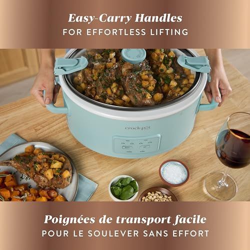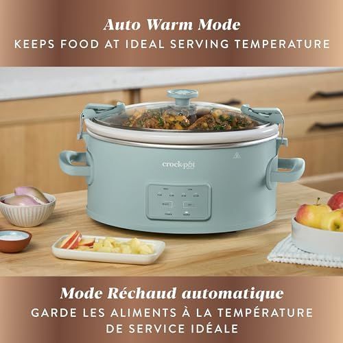 Elevated Design: Streamlined, modern-vintage aesthetic, and calming Ocean Fog green colour One-Touch Control: 4 pre-programmed settings make it easy for you to choose the best time and temperature for your meal Cook & Carry Locking Lid: Travel-proof locking lid features a tight seal that prevents leaks and spills, for mess-free travel when you\'re on the go Auto Warm Setting: Keeps food at the perfect serving temperature until it\'s time to eat Easy Carry Handles: Large, sturdy handles make lifting and carrying a breeze Easy Cleanup: Both the removable stoneware bowl and glass lid are dishwasher-safe Oven- and Dishwasher-Safe: The removable stoneware bowl is oven-safe up to 400 degrees F; both the bowl and glass lid are dishwasher-safe for easy clean up High Quality: Comes with a manufacturer\'s 1-year limited warranty › See more product details
