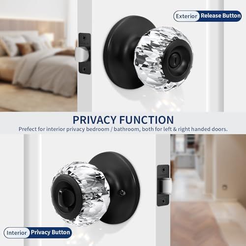 【Application】The matte black crystal door knobs with lock are privacy function(Keyless), perfect upgrade for bedroom and bathroom doors. It’s not just a door knob and sure to add a touch of sophistication to your home.