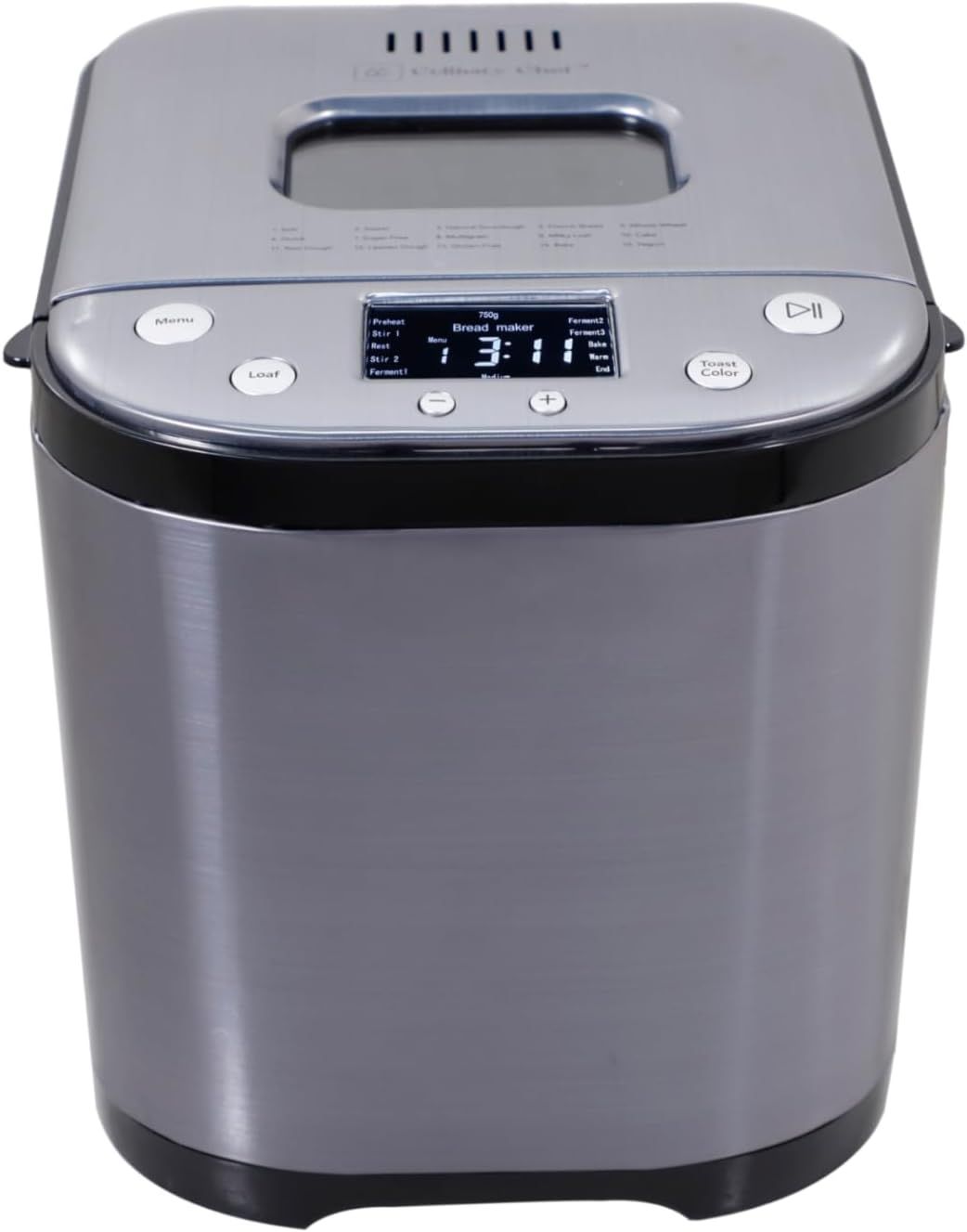 Craft Delicious Homemade Bread – Essential for DIY bread making this small bread maker creates classic loaves, French bread, sourdough, or even gluten free bread!\nSuperior Baking Results – This bread machine maker uses cutting-edge technology to craft the perfect balance of crust, color, and texture with bakery-style freshness.\nPre-Programmed Menu – Making bread is quick and easy with 15 fully automated menu options that cater to a wide range of loaf styles, sizes, flavors, and textures.\nCustom Loaf Options – Our bread making machine can make 1-lb, 1.5-lb., and 2-lb. loaf sizes to better suit your individual or family needs, or for specific dietary needs.\nSupports Gluten Free – Also a gluten free bread maker this unit has a dedicated setting that helps you crafted fresh bread while sticking to your wellness efforts.\nLarger Viewing Window – The lid on our bread maker features a large viewing window to let you monitor baking progress and ensure the outside is perfectly crispy.\nRemovable Bread Pan – Each [Brand] bread maker includes an easy-to-remove bread pan that lets you place or remove bread easily, or wash and clean it as needed.\nShow More