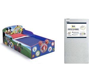 Delta Children Interactive Wood Toddler Bed, Disney Mickey Mouse + Serta Perfect Slumber Dual Sided Recycled Fiber Core Toddler Mattress (Bundle)