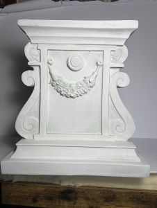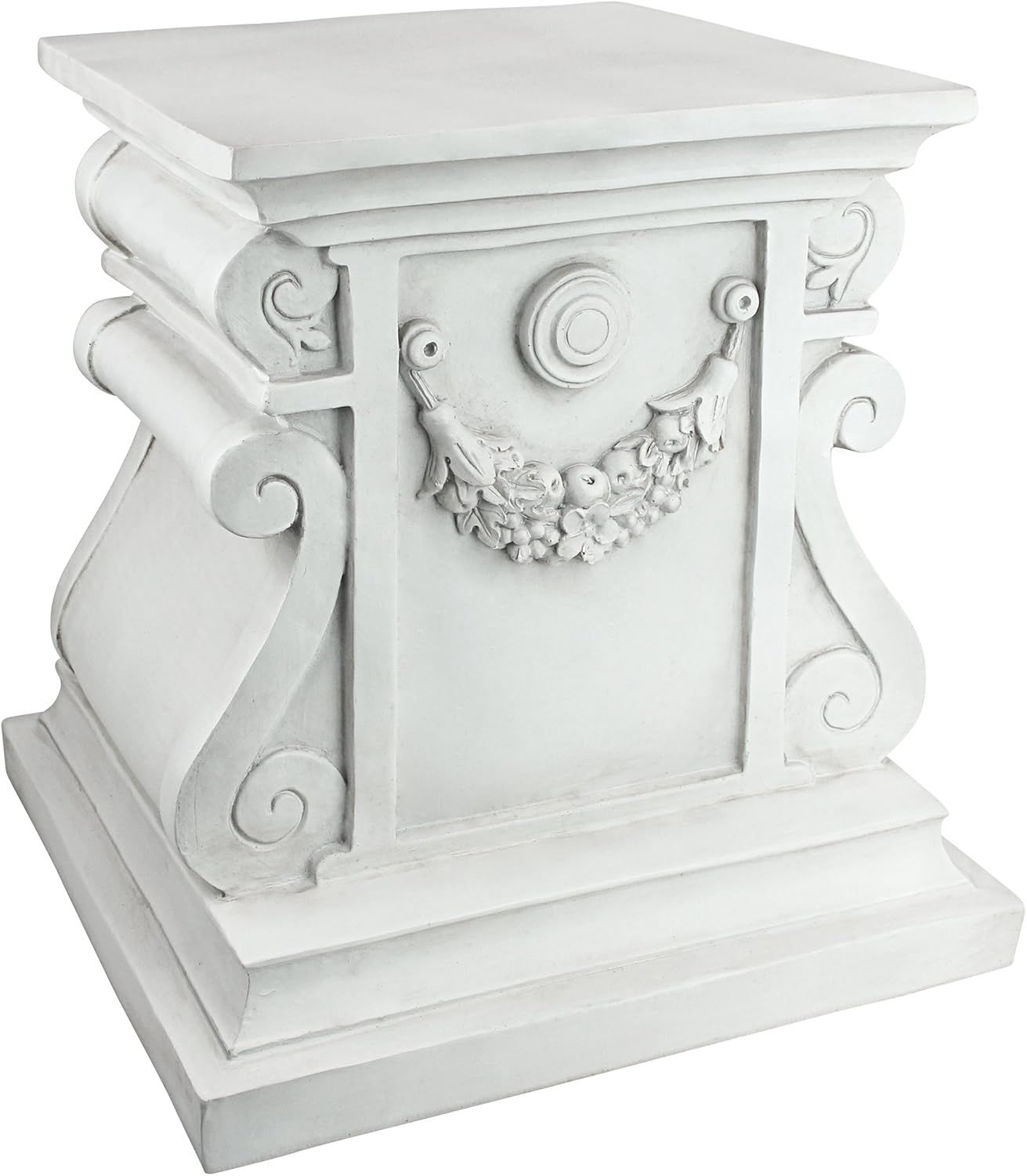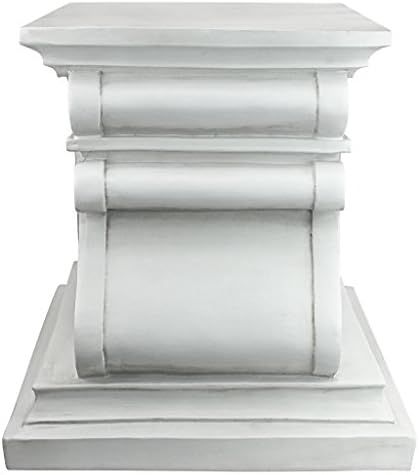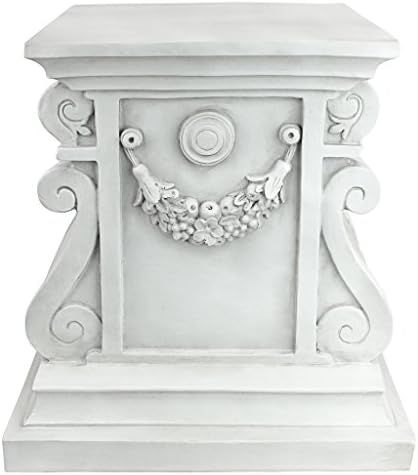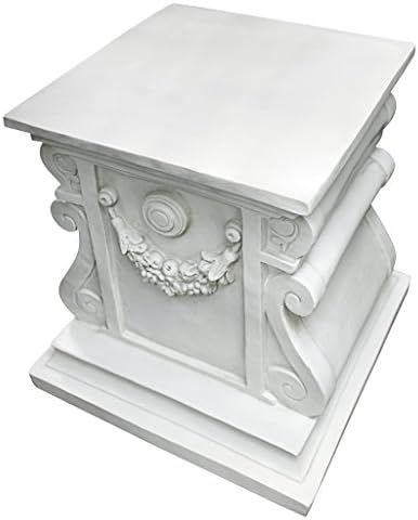 ELEVATE YOUR ARTWORK - Your favorite sculpture, decorative urn or blooming flower pot will be the crowning glory of our large plinth featuring swags and scrolls\nGARDEN SIDE TABLE - You\\\'ll find so many uses for our classic columns which will even stand in as side tables to hold your favorite beverage on a garden patio\nHIGH QUALITY PLINTH BASES - Hand-cast using real crushed stone bonded with durable designer resin, our classic plinth statue is topped with a UV resistant, antique stone finish\nDESIGN TOSCANO PLANT STANDS - Exclusive to the Design Toscano brand, this versatile garden pedestal can be used outdoor to hold an planter in a garden, or indoors to elevate fine statuary and decor\nOur large classic column sculptural base measures 38 x 37 x 38 cm 8.25 kg. and has a 30.5 cm square top surface area for plants or statues