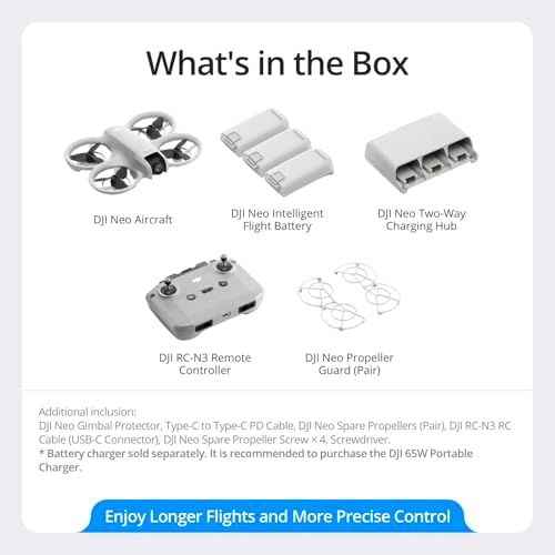 If you\'re ready to level up and perform precise aerial acrobatics, then the DJI Neo Fly More Combo is perfect for you, complete with DJI Neo, RC-N3, 3 Batteries, a Two-Way Charging Hub, and more.