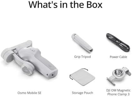 \"\nPortable, Foldable, and Magnetically Quick - Take this compact gimbal stabilizer on all your adventures. Snap-in and out with ease with the magnetic clamp to capture the second you want to shoot.\nStay on Point with ActiveTrack 6.0 - With upgraded tracking tech, OM SE phone gimbal sticks to your energetic kids or playful pets like glue. You can even make it track yourself! Become the star of your own film without needing anyone\'s help.\nRemote Control With Watch - Install the DJI Mimo app on your Apple Watch, and turn it into a smart remote for Osmo Mobile SE gimbal. Remotely view camera feeds, adjust the gimbal\'s angle, and capture photos and record videos all from your watch.\nEffortless Editing - Whether it\'s shot-by-shot assistance with DJI Mimo\'s ShotGuides or the multitude of templates to choose from in LightCut, go beyond just cutting down clips and get edits that inspire.\nLandscape and Portrait - From theater-worthy dramatic shots to light and casual social media content, switch effortlessly between horizontal and vertical shooting.\nSmooth Footage - Elevate your shots with 3-axis stabilization. With a next-gen control algorithm, Osmo Mobile SE phone gimbal compensates in real-time for buttery smooth footage.\nNew Status Panel- Quickly and conveniently check the battery level, system indicator status, and gimbal mode. Switch button Follow, Tilt Lock, FPV, and Spin Shot mode to get dynamic shots.\nThe gimbal is stain resistant and coated in a non-slip texture, with an ergonomic grip that will keep it secure in your hands. It\'s compatible with most iPhone, Samsung Galaxy, and Huawei series. Please check the compatibility list before purchasing.\n› See more product details\"