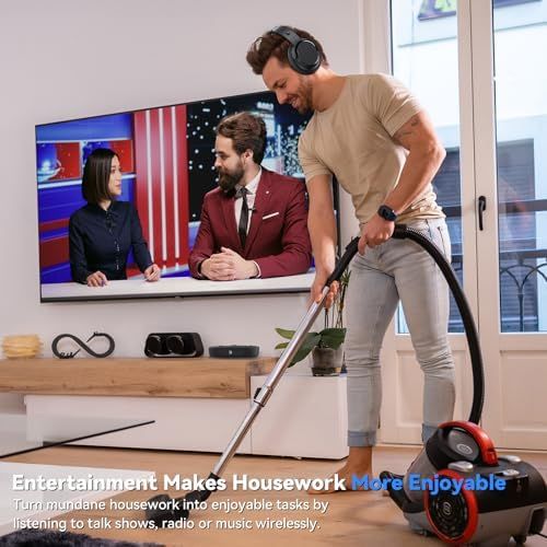 \"\nImmersive Viewing Experience: With advanced audio technology and high-fidelity drivers, the wireless headphones for TV let you hear the delicate sound of the breeze as Scarlett walks through the vast cotton fields while watching Gone with the Wind. As Scarlett sits alone in the shadows, sad music quietly plays, and the soulful melody makes you resonate with her emotions as if you were there. Every detail in the wireless headphones for TV makes this immortal story more vivid\nClear and Comfortable Listening Experience: TV headphones wireless for seniors provide unparalleled clear sound quality and personalized volume adjustment for people with hearing impairment. When listening to a concert, you can listen carefully to the unique sound of each instrument; when watching a drama, you can easily capture every line of the actor, making the story more vivid. This TV headphones wireless for seniors allows you to enjoy a better listening experience every time you use it\nSeamless and Smooth User Experience: Wireless headphones for TV are equipped with the latest wireless technology, ensuring ultra-low latency of \u003C40ms and stable connection performance of up to 30 meters/100 feet, allowing you to easily go to the refrigerator to get a drink while still enjoying the exciting football game commentary; allowing you to feel the real-time shock and tension in the fierce sprint and wonderful goal moments, without missing any wonderful moments\nReliable Power: Wireless headphones for TV are equipped with a high-performance battery that supports all-day use. You can listen to the news in the morning, watch your favorite TV series in the afternoon, and immerse yourself in exciting talk shows in the evening. When charging, just place the TV headphones wireless on the transmitter base, which is convenient and space-saving, ensuring that you always enjoy a seamless audio experience\nWidely Compatible: Wireless headphones for TV have advanced Bluetooth 5.2 technology, supports optical fiber, 3.5mm AUX and RCA interfaces, and is compatible with almost all TV brands. You can use this TV headphones wireless to easily connect to the TV to watch programs, and you can also connect to computers and mobile phones via Bluetooth to listen to music, radio, dramas, etc. It is flexible and convenient to meet your various needs\"