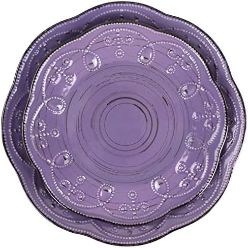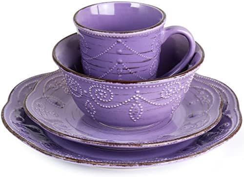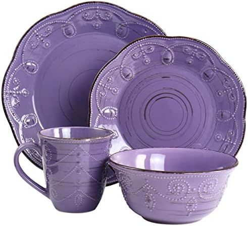 Elama Rustic Birch 16 Piece Stoneware Dinnerware Set in Purple, (EL-RUSTICBIRCH)