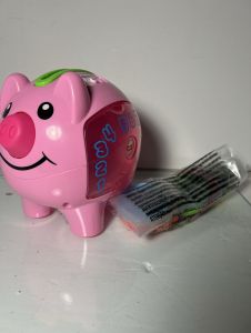 Musical toy piggy bank with 40+ songs, sounds and phrases 2 Smart Stages learning levels teach numbers and counting, colors, and Spanish words Drop the coins into piggy’s back or press the nose for fun songs, sounds and phrases Includes 10 colorful coins with numbers or animals on each side for put-and-take play Helps foster fine motor skills and introduces cause & effect for infants and toddlers ages 6 months to 3 years old