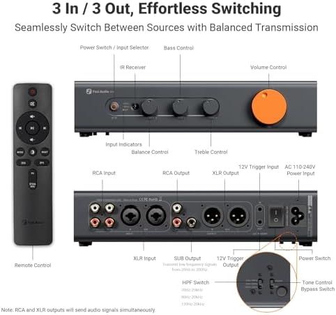Home Audio Control Hub: Features 3-in-3-out options for connecting up to three audio sources. Includes a remote control for one-touch input switching and volume adjustment—making it easy to manage your home audio system with freedom