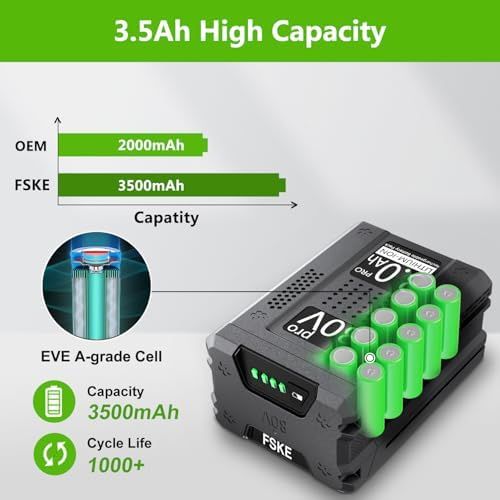 Replacement for Greenworks 80V Battery -- Voltage: 56 Volt | Lithium-Ion | Capacity: 3500mAh | Watt: 280Wh | the Replacement Battery give you longer lasting time