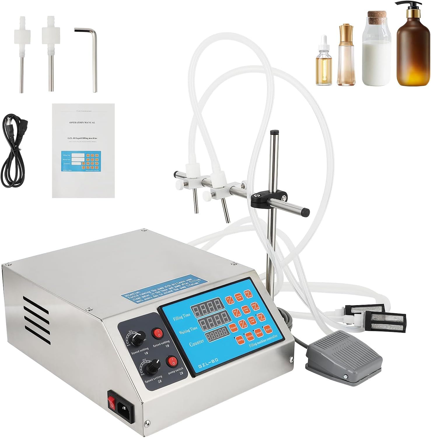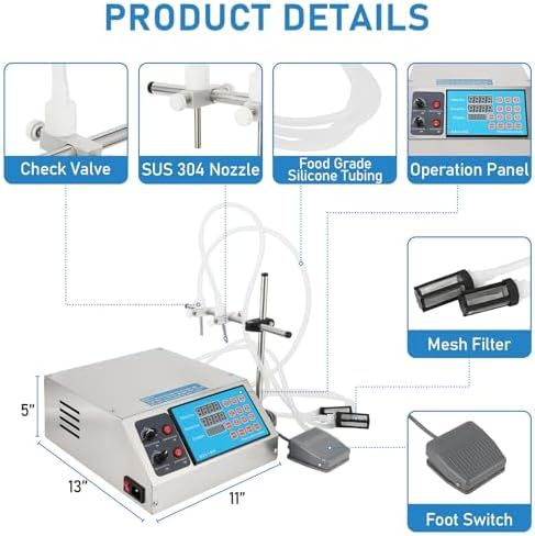 Compact & Portable: Weighing only 5.5 LBS with a small footprint of 7.1 x 5 x 3.8 in, this single-nozzle filling machine is perfect for small businesses and mobile bottling operations requiring efficient, portable solutions.