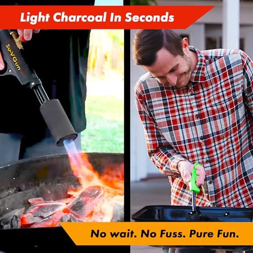 Instant Steak Searing and Charcoal Ignition. Apply that perfect Maillard sear directly to your steak with 240,000 BTUs of heat, without any propane torch taste, or light your smaller grill in under 60 seconds—perfect culinary torch for the kitchen or backyard BBQs, smokers, and tailgate parties.