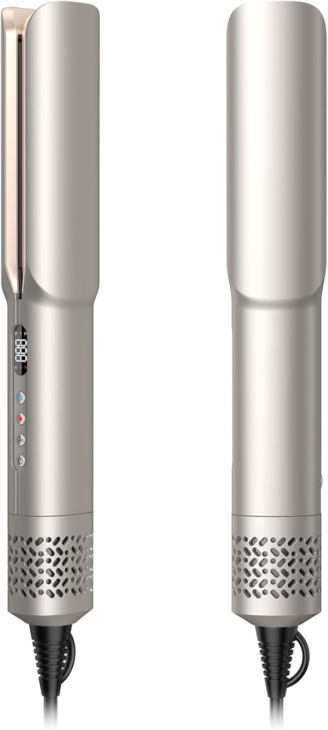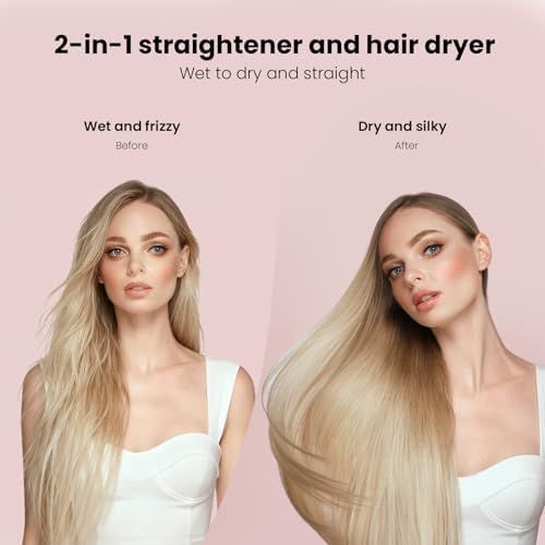 2 In 1 Straightener: 110,000 rpm high-speed motor, up to 23m/s air speed, Ultra fast enough for wet to dry and straightening hair simultaneous in one tool. Our advantage is lower-temperature, higher-speed ionic airflow straightening (the highest temperature of our straightener is 320 degrees, which is much lower than the 440 degrees of traditional straighteners. It straightens and protects the hair without damaging the protein structure of the hair). Helps you to achieve a straight and shiny style!