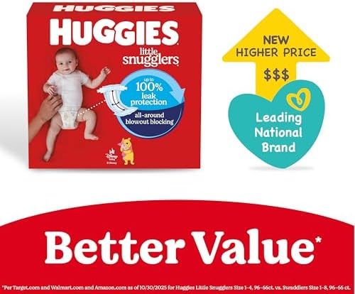 Huggies Little Snugglers Diapers: 144 baby diapers, size Newborn (up to 10 lbs); packaging may vary Up to 100% Leak-Free Protection: Our diapers have Huggies Leak Lock System that offers up to 12 hours of leak protection. Each baby diaper is made with Huggies’ GentleAbsorb Liner that absorbs wetness to help keep your baby’s skin clean and healthy Gentle Skin Protection: These Huggies diapers offer a curved and stretchy fit with all-around comfort for a gentle tummy fit. A soft, pocketed back waistband helps prevent diaper leaks and blowouts and helps keep mess away from your baby\'s skin The Only Brand Entirely Fragrance Free*: All Huggies diapers are safe for sensitive skin, hypoallergenic and free of fragrances (*among leading national diaper brands, across all offered variants) Features Disney designs as cute as your baby; packaging may vary
