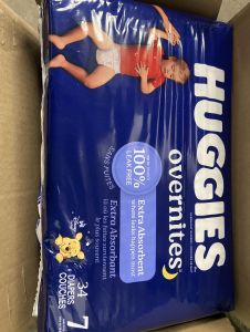 Huggies Overnites Size 7 Diapers: 36 Overnight Diapers, size 7 (41+ lbs) The #1 Selling Nighttime Diaper*: Overnight diapers feature a DryTouch Liner that quickly absorbs moisture and provide up to 12 hours of nighttime leak protection for all-night comfort, dryness and protection Nighttime Diapers Designed for Comfort: Contoured shape plus Double Grip Strips deliver a secure fit; also features a wetness indicator to let you know when it\'s time for a diaper change Disposable baby diapers are fragrance free, lotion free, paraben free, and free of elemental chlorine and natural rubber latex Features Disney Winnie the Pooh and Friends designs; product and packaging may vary from image shown