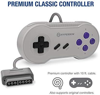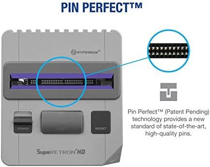 Hd audio and video (720p), 16:9/4:3 aspect ratio switch (patent pending) High compatibility for NTSC and pal SNES cartridges (via bottom case switch) Hyperkin-Engineered pin perfect (patent pending) technology sets a new standard for state-of-the-art, high-quality pins (2) x \"scout\" premium classic-style controller (8-feet cable) 3-Feet HD cable, 6-feet micro USB charge cable with USB ac adapter, AV ports with AV cable