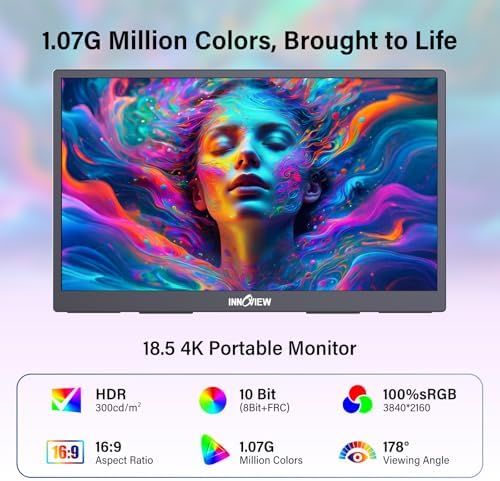 18.5-Inch 4K UHD Display | Immersive Viewing Experience: Features an 18.5-inch 4K UHD (3840x2160) screen with four times the pixels of Full HD. Enjoy stunning clarity and razor-sharp details for work, creative projects, and entertainment.