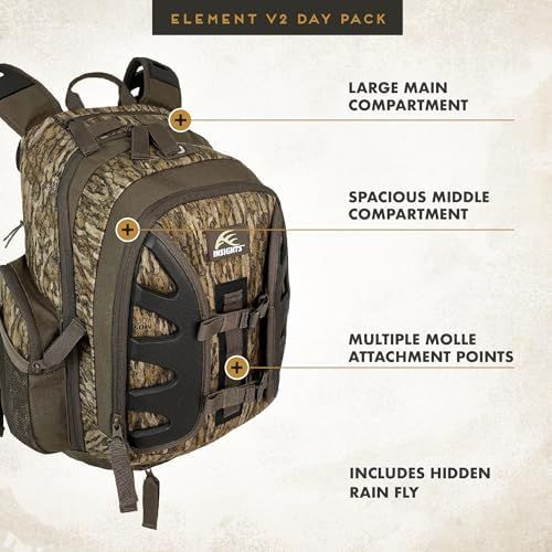 Insights Hunting by frogg toggs- The V2 Element, Heavy Duty 1,831 Cubic Inch Hiking Fishing Camping Hunting Backpack, MO Bottomland