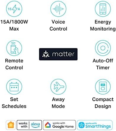 With Matter, users are no longer tied to specific platforms and works with all certified smart home platforms, such as Apple Home, Amazon Alexa, Google Home and Samsung SmartThings You can control all your smart home devices from a single app, reducing the need for multiple apps for different devices\nAll Matter-certified devices in your local area network (LAN) will work smoothly even when your home internet goes offline Matter allows effective communication directly between devices, without the need for a specific forwarding device For example, a Matter smart switch or sensor can turn on/off a Matter bulb directly without being connected to a cloud service, or other specific action Once configured, communication and control between Matter devices can be achieved directly on the local network\nBy monitoring your energy consumption over time, you can gain valuable insights into your usage patterns and make informed decisions about your energy consumption This can help you save money on your energy bills\nAvoid blocking additional outlets with its compact design, and plug in your WiFi smart plug with confidence thanks to its UL certified flame retardant design and 2-year limited warranty\nControl your WiFi smart plug from anywhere, anytime via the free Kasa App or just give voice commands to Siri, Amazon Alexa, Google Assistant or Samsung SmartThings Your favorite smart assistant enables you to have a truly hands-free experience\n› See more product details