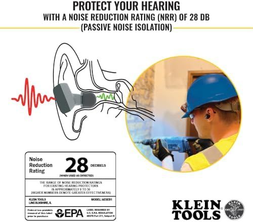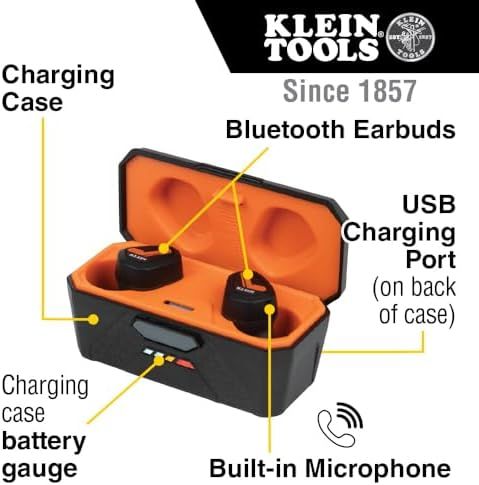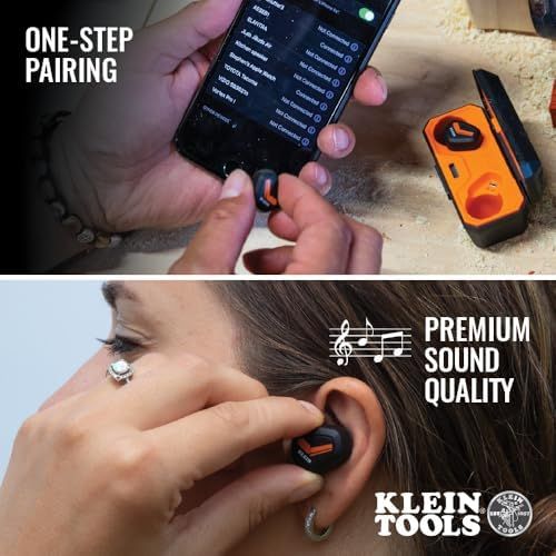 Klein Tools AESEB1 Bluetooth Jobsite Earbuds, Wireless Hearing Protection Earplugs with 28dB Noise Reduction Rating, 15-Hour Playtime