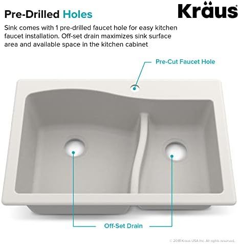 IDEAL FOR RETROFITTING: Installs as DROP IN SINK with any type of countertop or as an UNDERMOUNT SINK – THICK MOUNTING DECK with beveled edge for easy cleaning; 1 pre-drilled hole and 4 knockout holes for installation of kitchen faucet and accessories