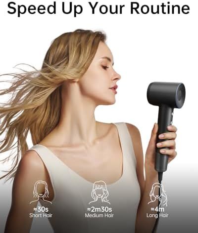 【High-Speed Brushless Motor & Fast Drying】Laifen hair dryer is equipped with a 110,000 RPM high-speed brushless motor, wind speed reaches 22m/s. Strong airflow can dry hair faster, speed up your routine.