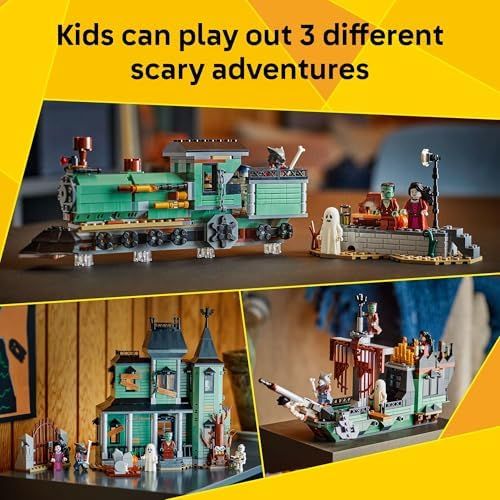 3 SCARY MODELS IN 1 BOX – The LEGO Creator 3 in 1 Haunted Mansion building toy lets kids 9 years old and up create 3 different scary models using the same bricks: a haunted house, ghostly ship, or chilling train set