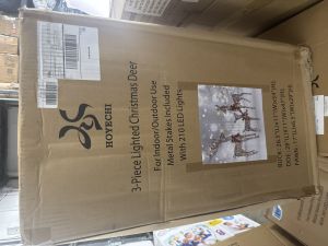 Lighted Christmas Decoration Deer 3 Piece, HOYECHI Light up Christmas Decor Reindeer Family Set for Indoor Outdoor Front Yard Porch with LED Lights, Plug, Extension Cord, Ground Stakes - Brown