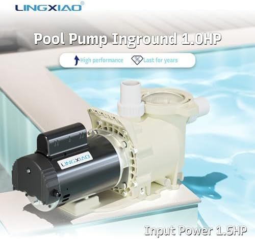 【LINGXIAO 1.0HP Pool Pump】: 6340GPH high flow design, suitable for over 90% of home pools (above ground or in ground pools). Or replace your noisy old and faulty pump. The LINGXIAO 56SFP200-I pool pump is a direct replacement for Superflo pool pumps 340038 and 348023.