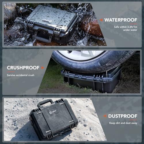 Interior Size (with foam): 15.7x10.2x4.6 inch / 40x26x11.5 cm | Interior Size (empty case): 17.32x11.42x4.72 inch / 44x29x12 cm | Fits up to 16-inch laptop | Exterior Size: 18.62x13.70x5.09 inch / 47.3x34.8x12.8 cm Case is made of new instead of recycled Polypropylene resin to ensure ruggedness SGS certified IP67 dust- and waterproofness guarantee safety in harsh environment with water, dust, sand, or mud, etc. 2 pieces of foam can be easily configured by tearing along the shape\'s boundaries and removing the foam to fit the object 9 features of the case make it stand out when comparing user experience with other cases Lykus quality and lifetime limited warranty for the case › See more product details