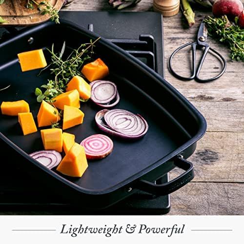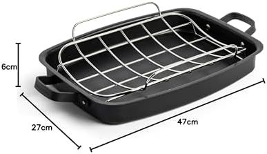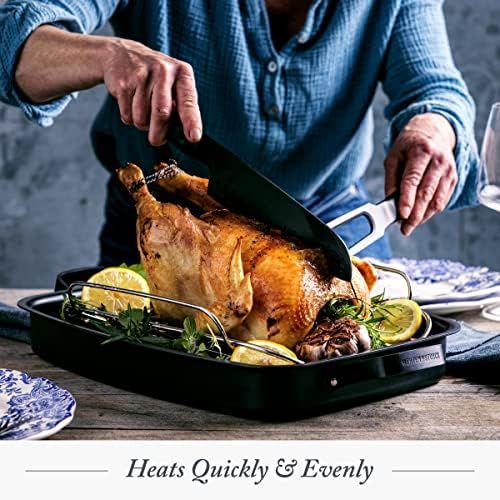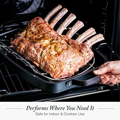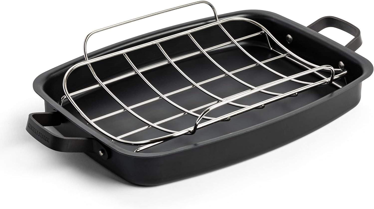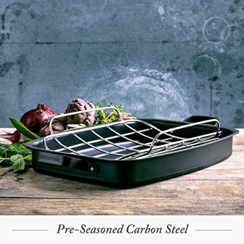 Merten & Storck Pre-Seasoned Carbon Steel Induction 15 x 11.5 Roasting Pan with Stainless Steel Roaster Rack, Oven Safe, Black