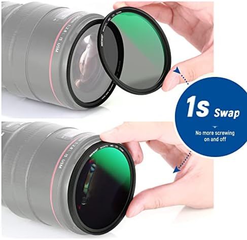【Complete Camera Lens Filter Kit】 The 4-in-i magnetic camera lens filter kit includes a Neutral Density ND 1000 filter, a ultraviolet MCUV filter, a circular polarizing (CPL) filter, a Magnetic Adapter Ring, a water-resistant Filter Pouch to withstand drizzling rain or snow, and a handy Cleaning Cloth to remove dirt or grease on the filter surface. You can use the magnetic adapter ring with any filter, or just leave the adapter ring on the lens for use with the lens cap\n【Quick Magnetic Attachment】 Unlike traditional thread filters, the NEEWER Magnetic Lens Filter Kit allows you to change or install filters in less than a second, and even achieve easy stacking of filters for use. Suitable for outdoor travel photography, and capturing beautiful moments\n【42-layer Nano Coating & HD optical glass】Adopt imported AGC HD optical glass, 42-layer double-sided coating, no chromatic aberration (color shift), hydrophobicity, scratch resistance, and oil resistance. All-round protection of your lens from accidental damage\n【Ultra Slim Design】Aviation-grade aluminum alloy is precision CNC machined, making the filter durable and easy to install and remove from a 62mm lens. The 1.9mm-3.5mm ultra-thin frame ensures that the 16mm wide-angle focal length has no vignetting and vignetting. The slim filter prevents vignetting even if you use a wide-angle or telephoto lens\n【ND1000/CPL/UV Filter & Combination】The ND1000 (10 f-stops) filter helps shoot stunning mesmerizing long exposure. The MCUV filter reduces UV rays and eliminates blue casts in photos. CPL filters help reduces glare from a non-metallic surface and enhances color saturation & contrast. You can also use them in combination, such as magnetic adapter ring + CPL + ND1000+MCUV