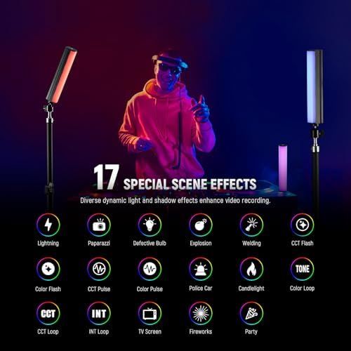 【RGB Full Color&17 Scene Effects】In HSI Mode, you can get all the RGB colors by 360° hue, 0~100% brightness, and 0~100 saturation, and custom for vivid colors and more lighting possibilities. You can also explore more creativity with17 dazzling scenes like cop/police car, lightning, and fireworks, adding eye catching elements to your masterpiece