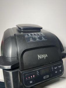 The Ninja Foodi Grill. The grill that sears, sizzles, and air fry crisps. Indoor grill and air fryer 500F air circulates around food for amazing Surround Searing while the 500F high density grill grate creates char grilled marks and flavors, for food that\'s perfectly cooked on the inside and char grilled on every side with Cyclonic Grilling Technology With the BTU cooking power of an outdoor grill, it brings outdoor grill flavors conveniently to your countertop any day of the year Forgot to defrost dinner- Transform foods from frozen to perfectly char grilled in 25 minutes. Dishwasher Safe Components Air fry crisp with upto 75 percent less fat than deep frying (tested against hand cut, deep fried French fries), using the included 4 quart crisper basket included components: Chef-created 15-recipe book