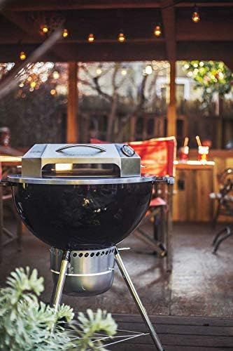 【Turn Your Kettle Grill into A Professional Pizza Oven】 - This pizza oven kit is specially designed for 22” Charcoal Kettle grills like weber, char broil, napoleon and other models. It is the perfect choice if you don’t have the space for a wood-fired oven, it turns your outdoor kettle grill into a professional style pizza oven.\n【Double-Wall Ceiling to Retain Chamber Heat】 - Made of highest quality stainless steel with a double-wall ceiling for optimal heat retention. Professional design for oven-style baking and wood-fired temperatures.\n【Cordierite Stone with Excellent Heat Resistance】 - Round cordierite ceramic stone pulls outer moisture off dough and promotes perfect crust, leaving the inside moist and fluffy. Allows you to try out all your favorite recipes and bake bread, chicken tenders, shrimp, cookies, pies and any other pastry to perfection.\n【Easy To Operate】 - Assembles and installs in minutes with no tools. Fast,easy way to bake fresh/frozen pizza! So much faster than baking in oven and the pizza come out crispy, not soggy. PLEASE DO NOT close the grill lid when you use the pizza oven to prevent thermometer turning black due to very high heat and full moisture in the grill.\n【4 Pieces Kit】 - The kit includes 4 pieces tool pack: heavy 17.3“ stainless steel chamber(diameter of the base is 22.9 inch), 15\\\" round pizza stone, 13.5\\\"*16\\\" aluminum pizza peel and thermometer.