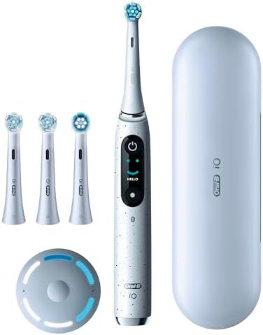 Oral-B Power iO Series 10 Electric Toothbrush, Stardust White, iO10 Rechargeable Power Toothbrush with iO Sense Charger, 4 Brush Heads, and Charging Travel Case