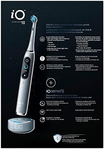 You will receive one (1) Oral-B iO10 Electric Toothbrush, two (2) Ultimate Clean Replacement Brush Heads, two (2) Gentle Care Replacement Brush Heads and one (1) Charger The new iO Sense smart charger provides personalized live coaching to cover all 6 brushing zones Experience a professional clean feeling with micro-vibrating bristles Smart pressure sensor that lights up when you are brushing too hard Interactive color display for brushing updates › See more product details