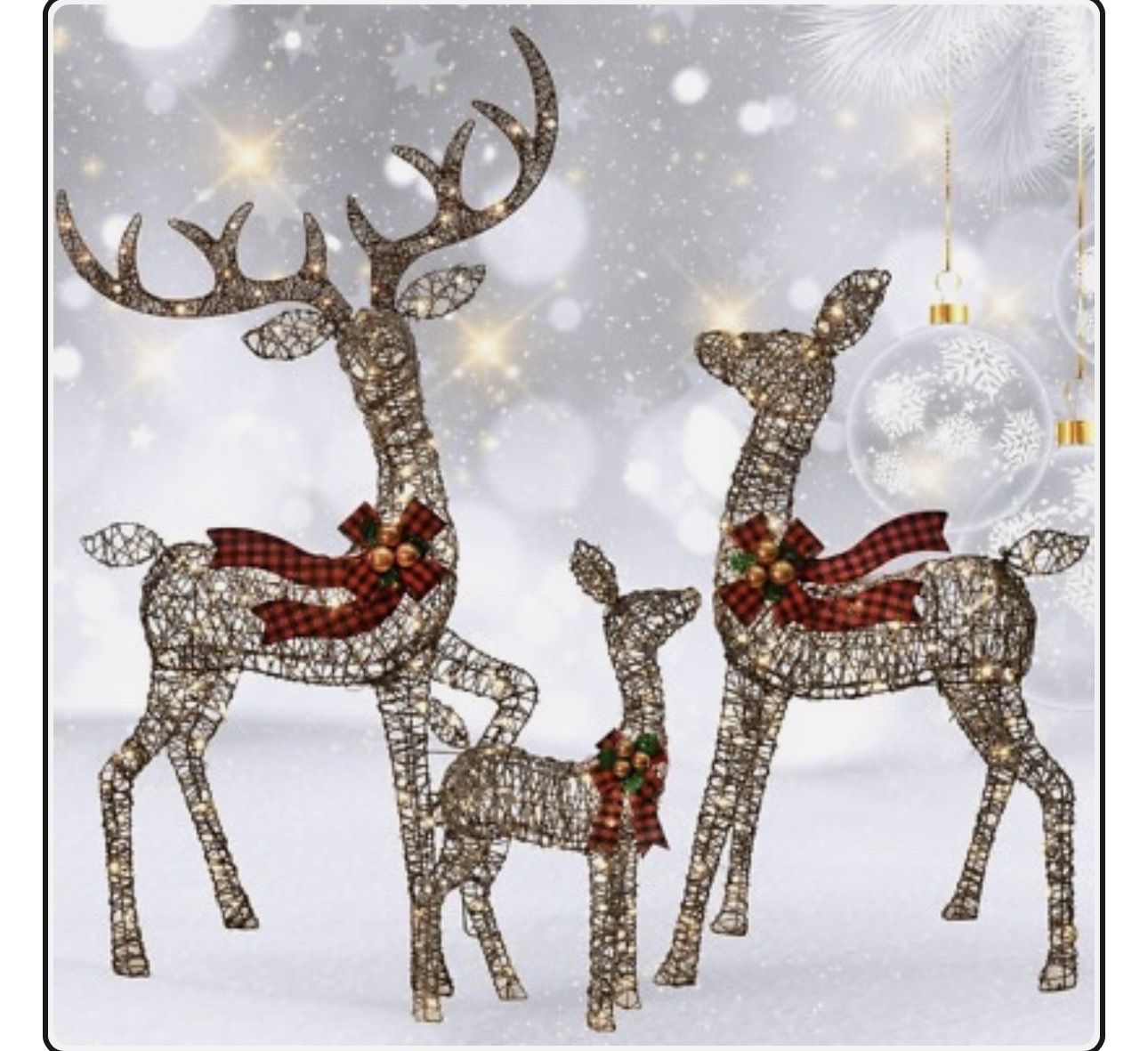 Outdoor Christmas Decorations Reindeer Family - HOYECHI Light Up Rattan Deer 3 Set with 210 LED Lights - Outside Yard Decor Kit Including Lighted 3-Piece Deer, Stakes - Brown